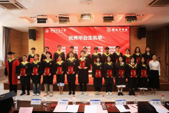 在庄重的学位授予仪式环节,毕业生们身着学位服依次登台。院长马炳和教授、副院长王少熙教授、阴玥副教授为他们逐一拨穗正冠、授予学位证书。流苏从右至左的拨动,标志着2025届微电子学子学业功成,正式启航新征程。