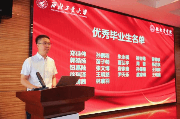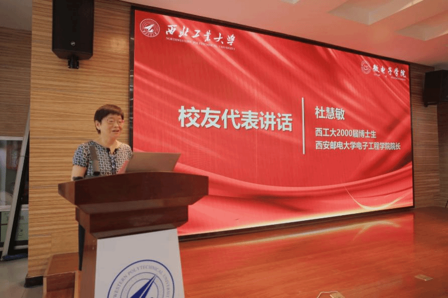 院长杜慧敏教授作为校友代表讲话。她分享了在西工大的求学经历和在集成电路领域深耕的感悟,生动阐释了“公诚勇毅”“三实一新”校训校风的指引,鼓励学弟学妹们保持热情,深耕专业,锐意创新。