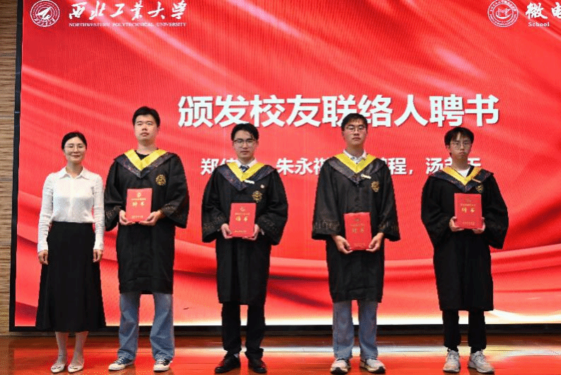 党委书记杨妮花为其颁发聘书,期望他们成为连接母校与校友的桥梁,传承西工大精神。